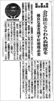 脇氏は、各発注者とも現在の制度的枠組みの中でそれなりの努力をしているが、多くの建設会社は赤字で倒産しかねない状況にあるとして、「政治や行政は現場の実態で評価される」と指摘。公共工事に関する評価はマイナスであり、「会計法の論理を否定することから始めなければならない」と強調した。